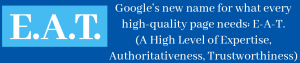 Google doesn’t want to serve up links to pages that share uneducated advice, opinions, or potentially fraudulent websites. Google wants to be as certain as possible that they are recommending sites that display a high level of expertise, authority, and trustworthiness — which is what E-A-T stands for!